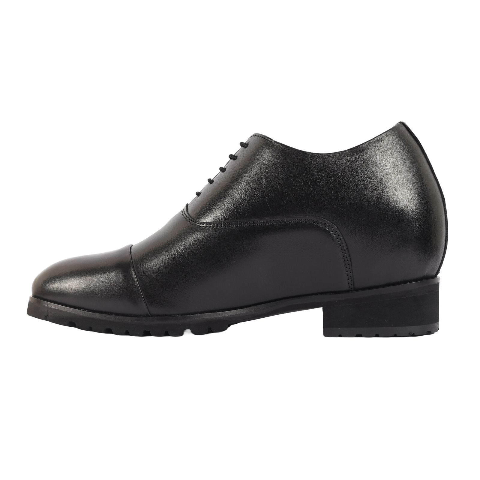 Black genuine leather formal shoes with a hidden heel