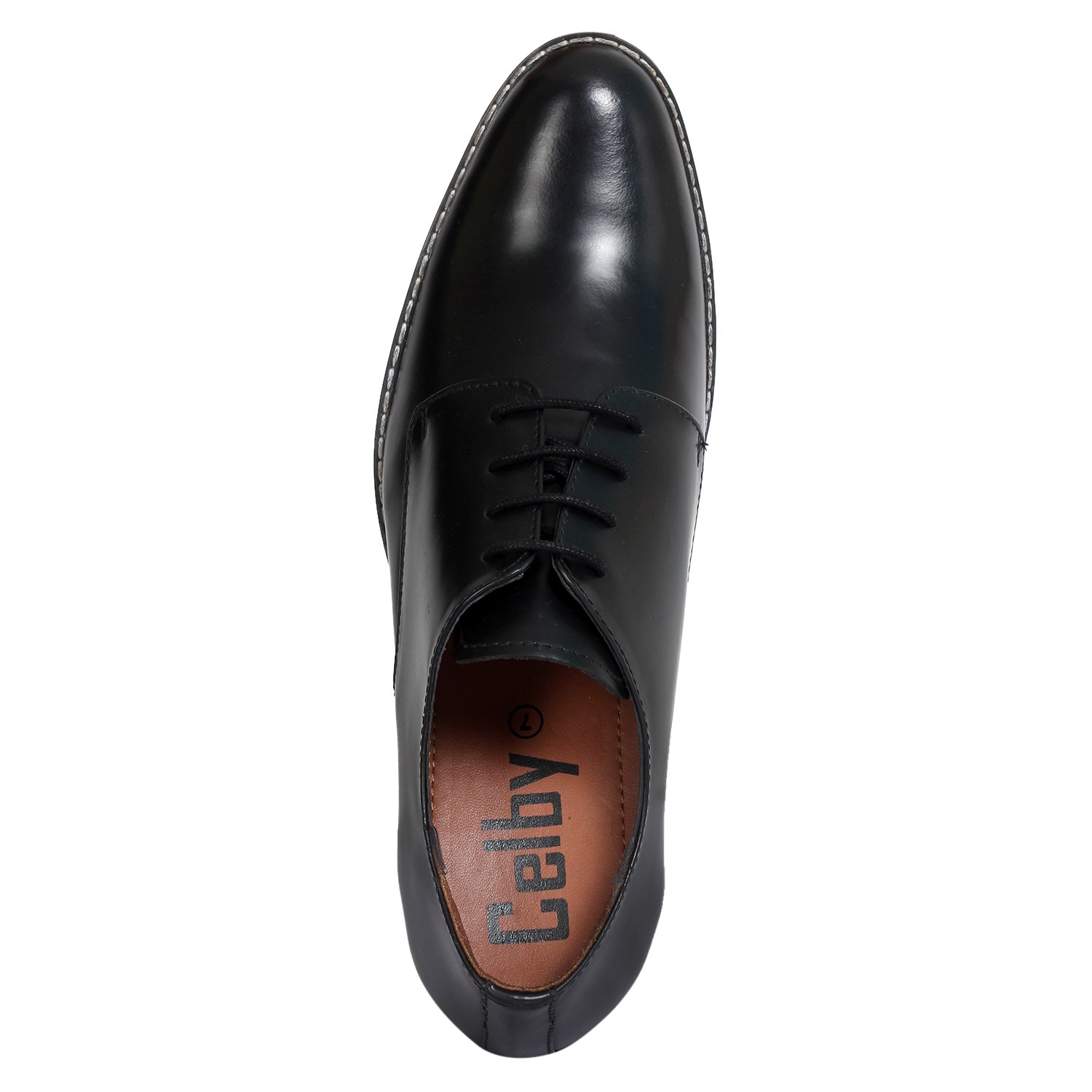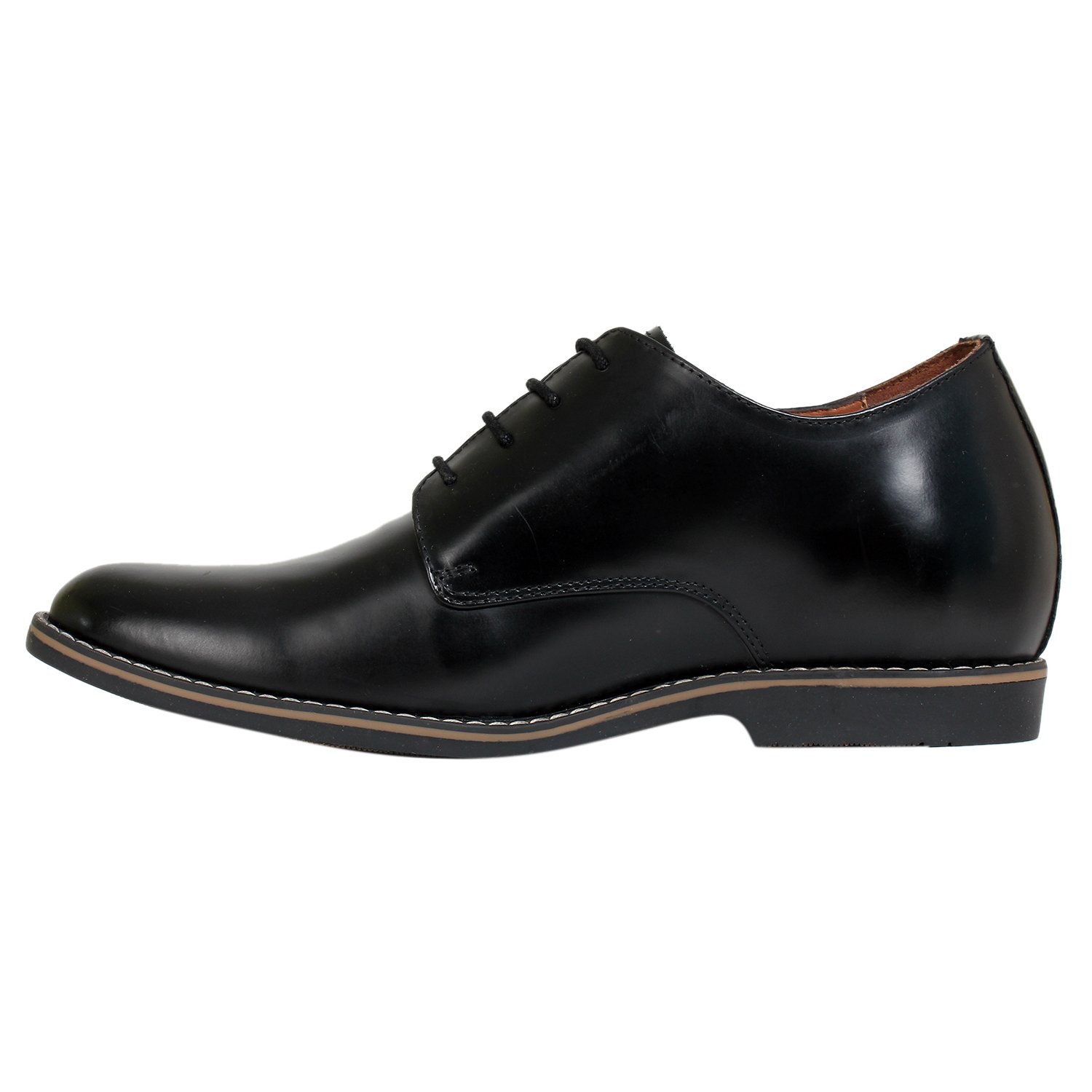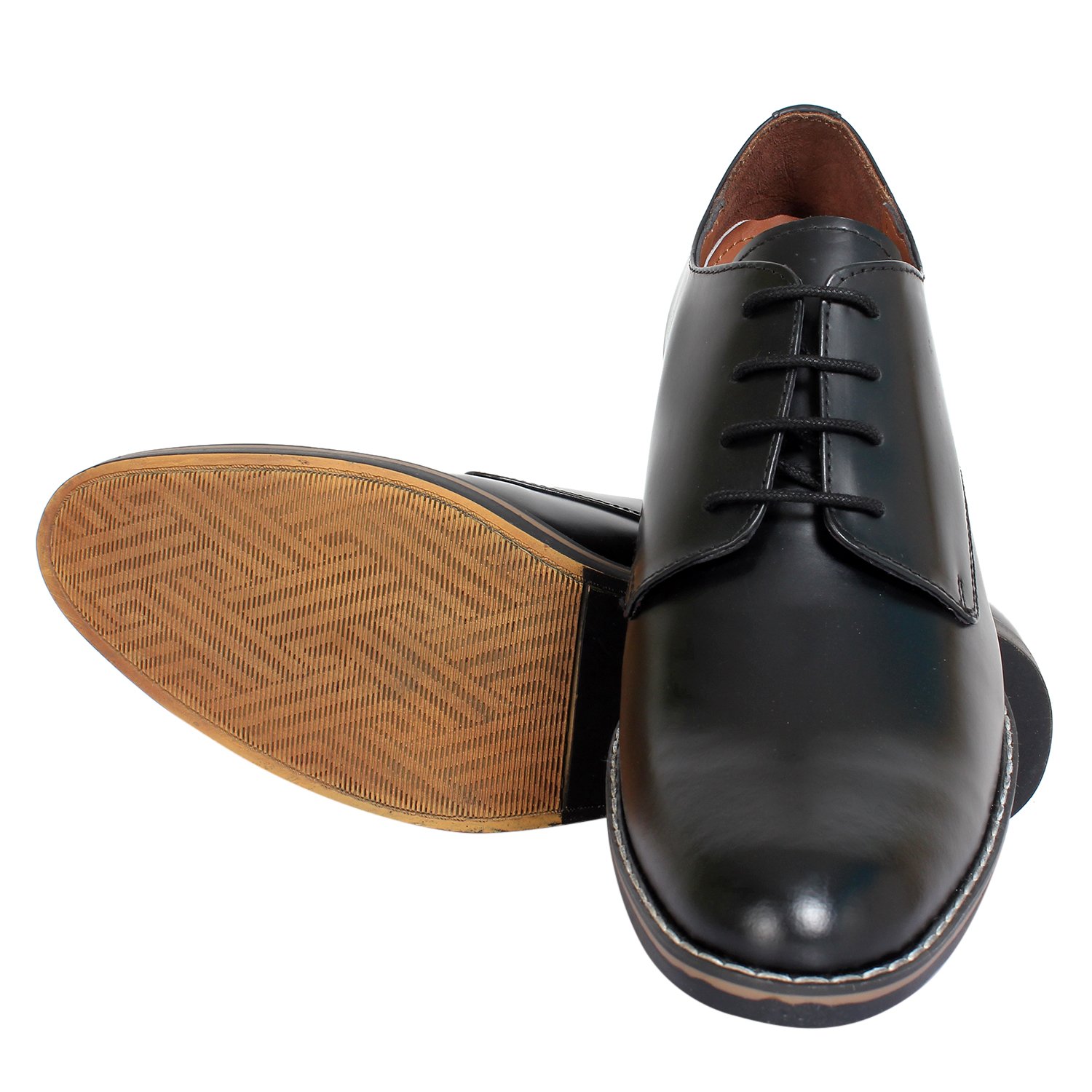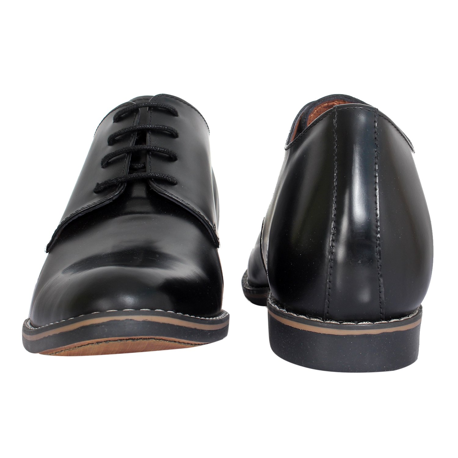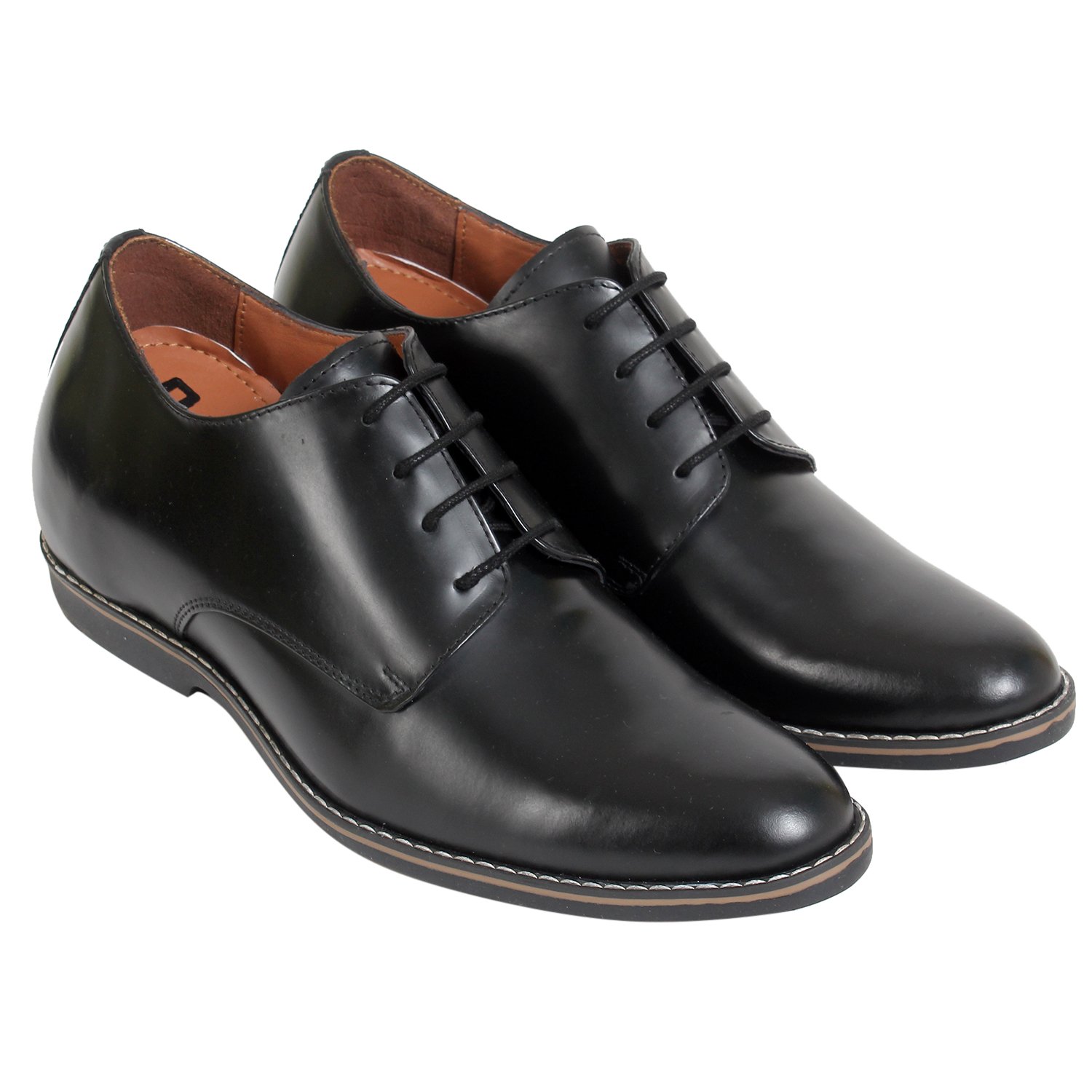 Black leather solid derby shoes with a hidden heel
